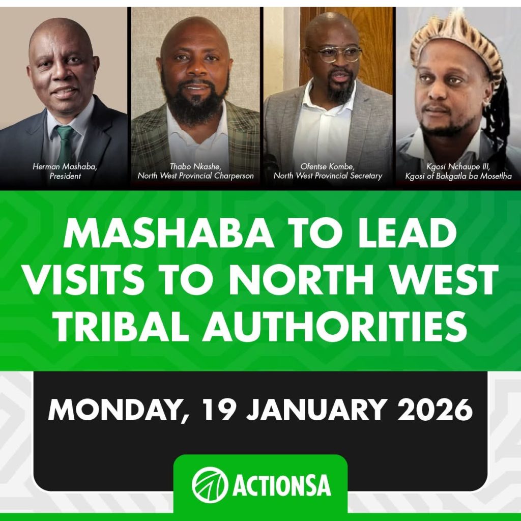 According to the party, the North West visit will provide an opportunity to listen to the concerns of traditional leaders and communities, while also sharing ActionSA’s vision for inclusive governance and cooperative leadership.
